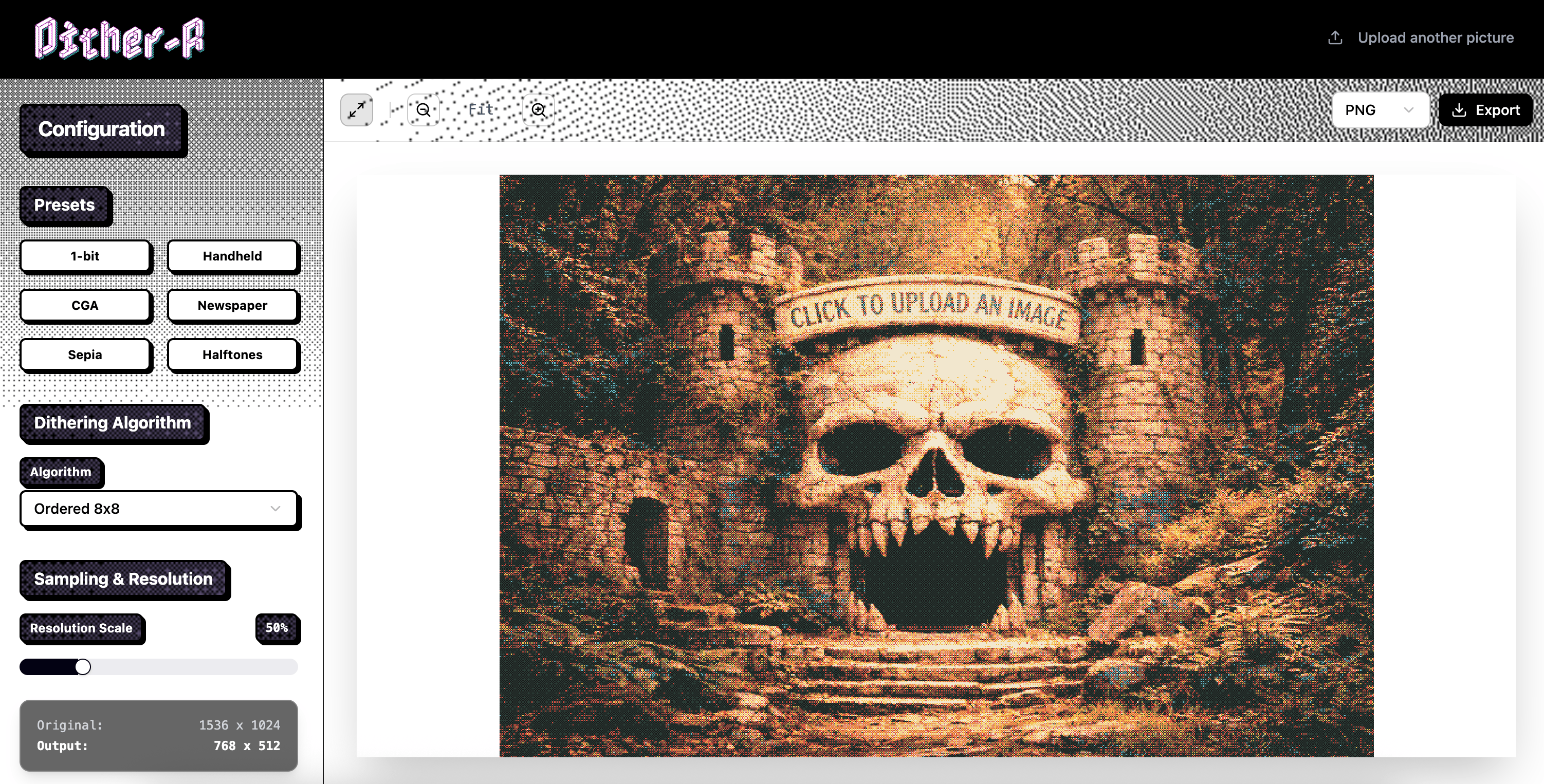 Dither-R is a browser-based image dithering tool that transforms photos into retro, lo-fi artwork in seconds. Choose from presets like 1-bit, CGA, Newspaper, and Halftones, or customize your own look with control over dithering algorithm, color scheme, and output resolution. Upload, tweak, and export, all in your browser.